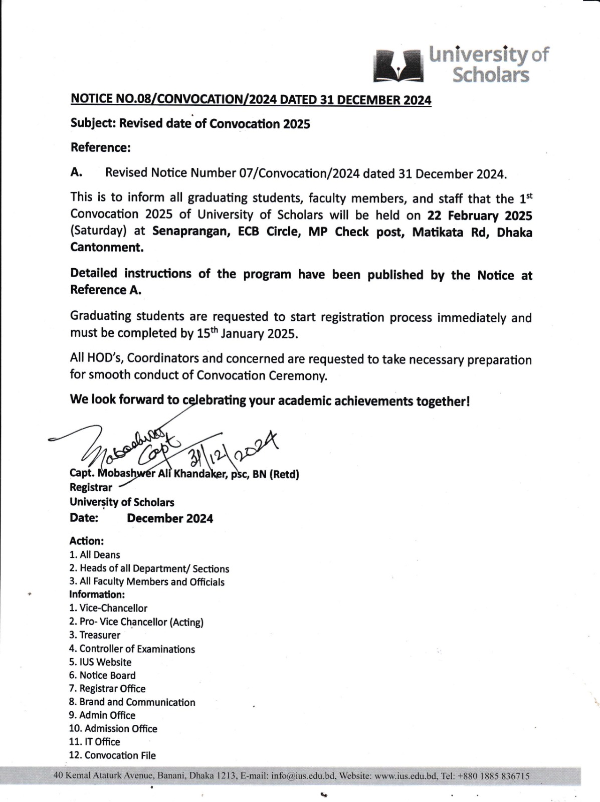 • Revised Date of Convocation 2025